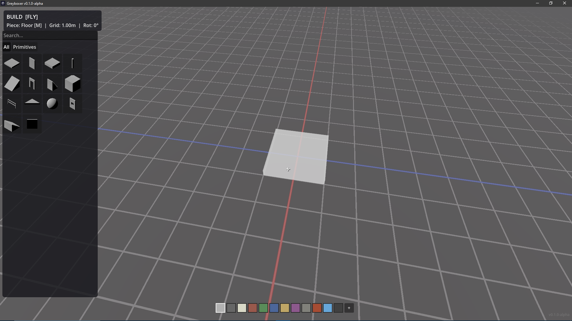 Built-in primitives: floor, wall, platform, column, ramp, doorway, staircase, cube, railing, half floor, sphere, window, shallow stairs (more to come!)